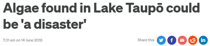 Radio New Zealand (2018) Algae found in Lake Taupō could be ‘a disaster’